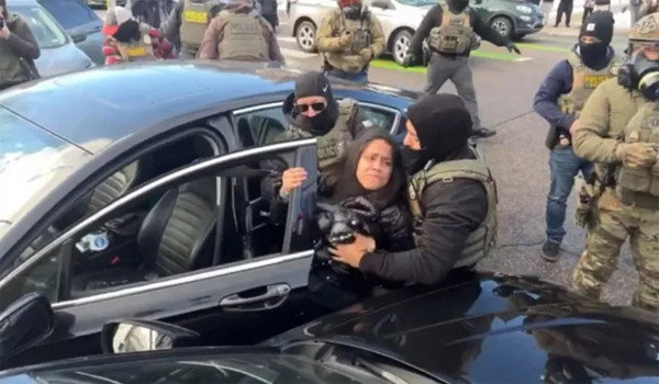 সামাজিক যোগাযোগ মাধ্যমে ছড়িয়ে পড়া ভিডিওতে দেখা যায়, উজ্জ্বল লাল রঙের ক্যাপ মাথায় কালো টি-শার্ট পরিহিত ৬৬ বছর বয়সী ওই ব্যক্তিকে দুই পুলিশ কর্মকর্তা ঘিরে আছেন। তার হাতে হাতকড়া দেখা যায়।